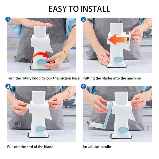 EDEFISY Cheese Grater Hand Crank Rotary Cheese Grater with Handle,3-in-1 Cheese Shredder with Interchangeable Blades and Strong Suction Base Multifunctional Grater for Kitchen