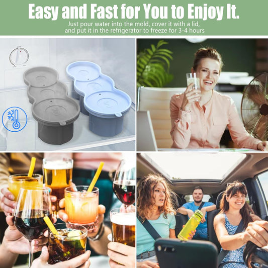 Jeniulet Ice Cube Tray 3 Different sizes Durable Stackable Silicone Cylinder Ice Cube Mold for 20oz 30oz 40oz Tumbler with Lid, Ice Tong and Brush for freezer, Chilling Cocktails,Whiskey, BPA Free